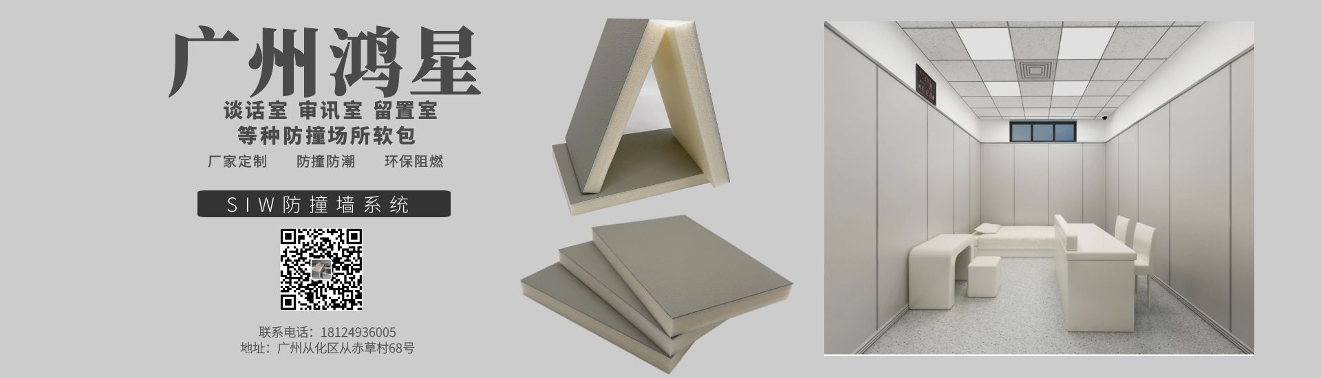 審訊室防撞軟包 鴻星品牌生產的審訊室軟包常用規格為1250*2450mm,厚度有17/20/25/30mm。談話室防撞軟包材質均勻堅實,富有彈性、韌性、耐…